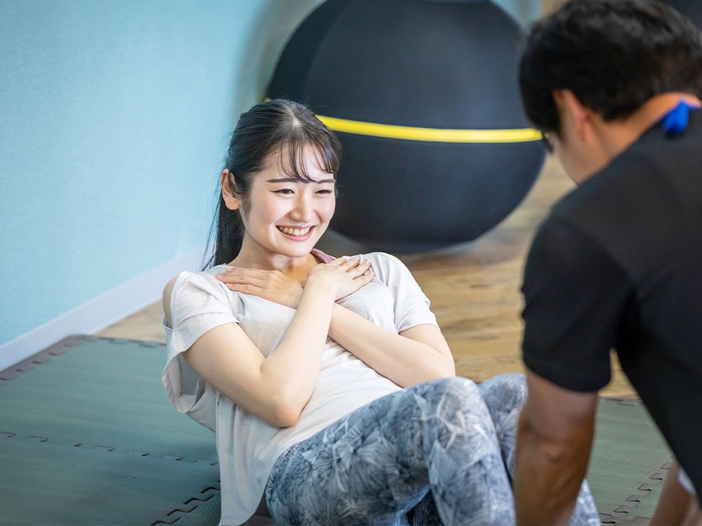 トレーニングはもちろん、食事に関しての栄養管理をはじめ、ご自身でもできるボディケアやストレッチ方法などもサポートすることができます。